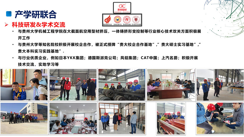 貴州貴材是一家注重知識產權保護和核心技術投入的國家高新技術企業,企業于2018年1月正式成立研發中心,專注于行業產品的核心技術攻關。中心多次利用企業自身生產技術積累優勢和廣闊銷售渠道來積極推廣自身科技成果轉換。與貴州大學,貴州理工大學等知名院校專家在型材原材料,工業模具設計,型材生產工藝,終端消費品開發,航空用鋁鋰合金生產研發等行業領域合作研究開發多項科技項目。2021年4月,貴州貴材與貴州大學機械工程學院正式簽署校企合作協議,雙方利用自身優勢在鋁工業領域積極展開技術攻關和人才交流互動。同時企業引進先進科技成果并實施轉換,取得較好的用戶體驗和經濟效益