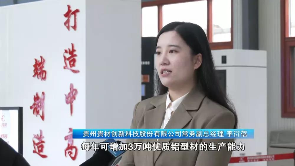 貴州貴材創新科技股份有限公司常務副總經理 李衍蓓:生產部三期項目建成后,每年可增加3萬噸優質鋁型材的生產能力,年產值可增加7個億。同時我們將推進能源監控體系、自動化生產、數字化質檢系統的建設。